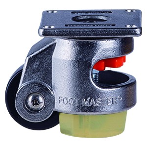 支架: 不锈钢 锻造脚轮座 及铸造壳体,使用强化不锈钢保护钢珠槽的双重钢珠旋转结构,橙色手把或通过扳手调节高度,NBR 防震动底座,螺栓式轮轴紧固构造,全部使用耐腐蚀零件